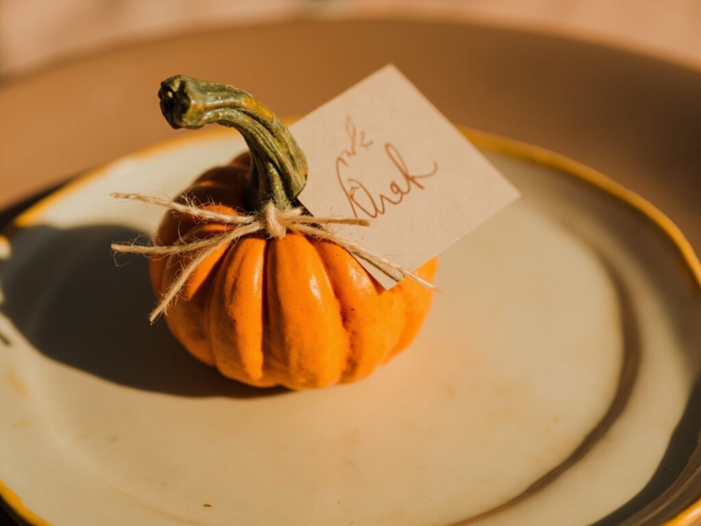 • Handwritten Place Cards: Tuck into mini pumpkins for a charming detail.