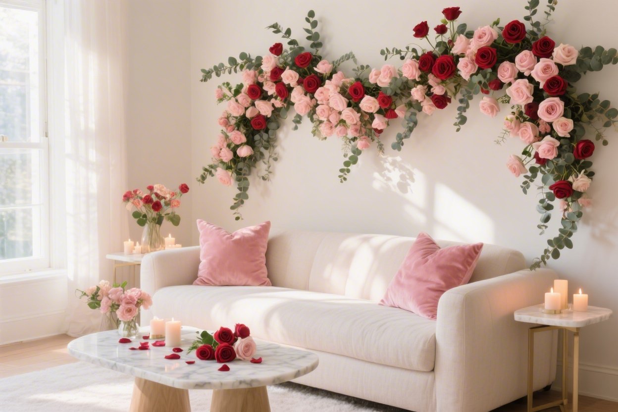 Whether you’re leaning chic and minimal or all-in on glittering glam, a floral Valentine’s Day backdrop using roses and eucalyptus is the quickest way to turn a regular room into a love-soaked scene. Pick your mood, gather your blooms, and let romance climb the walls—in the most gorgeous way.