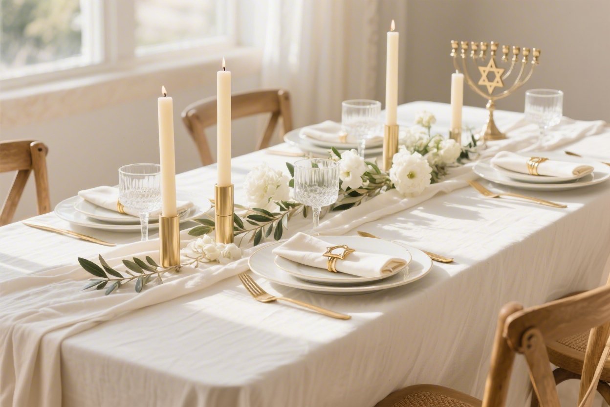 I’m walking you through seven fully styled looks—each one different, each one done. Picture yourself hosting Shabbat, holidays, or a chic dinner with subtle symbolism and tons of texture. No lettering, no fuss—just pure style.